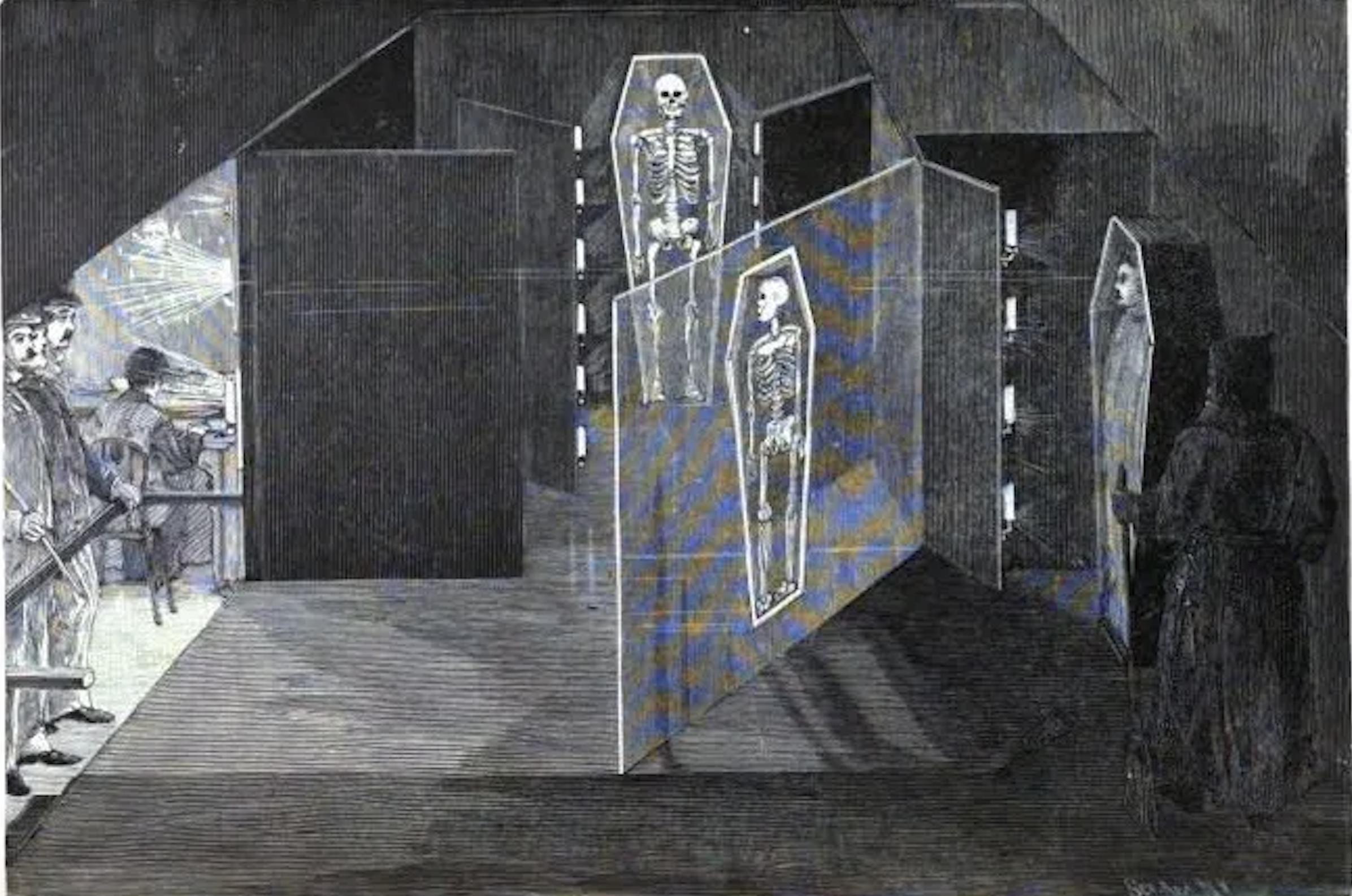 The installation is based on a continuous optical illusion: the sculpture is divided into four distinct states corresponding to different temporalities of degradation — from pristine to ruined. A programmed lighting sequence activates each segment in turn, giving the impression that the material evolves, cracks, and collapses before the viewer’s eyes. This principle draws from precinematic devices, notably Pepper's ghost, where reflections, transparencies, and apparitions shape the perception of unstable images, oscillating between presence and disappearance. Within this shifting perception, it becomes uncertain whether the transformation is purely optical or the result of a process unfolding within the material itself.